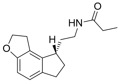 Agomelatine is simply the naphthalene bioisostere of indole. This compound is more lipophilic than melatonin and has an appreciably longer half-life. Ramelteon exploits several optimisations: the acetyl group is extended into the lipophilic pocket, the C5-O alkyl group is restrained in its active conformation to the face-e pocket, saturation and substitution of the pyrrolic component results in the ethylamido side-chain subtending below the plane. Ramelteon is highly selective and also incredibly potent. Agomelatine on the other hand is far less receptor sub-type selective. In fact, so lax is the selectivity that is also has antagonist activity at the 5-HT2C receptor - this side-effect is actually very fortuitous. Over stimulation of the 5-HT2C receptor is the cause of anxiety prevalent during the early phase of treatment with SSRI's. Hence Agomelatine is particularly useful as an SSRI adjunctive agent to offset symptoms of anxiety until receptor desensitisation occurs.